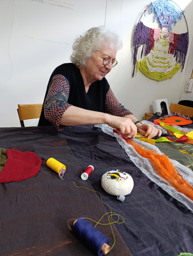 I make spatial work, installations and tapestries. I initially used paper and textiles at art school as practice material. However, I soon discovered the visual quality and the creative possibilities. I love to experiment with these materials and explore new possibilities.